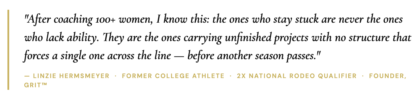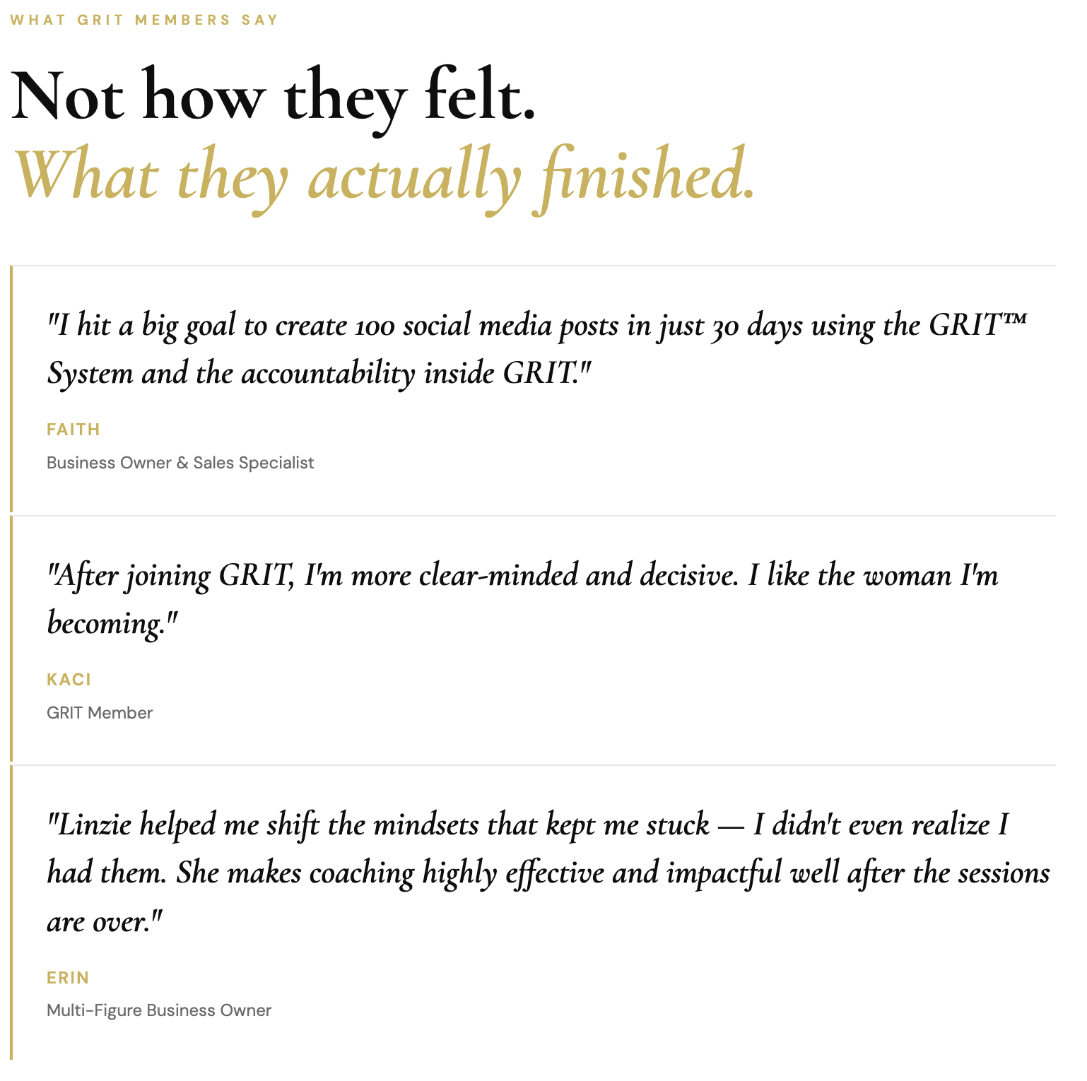 I'm Linzie, and GRIT was built for Founders Who Finish