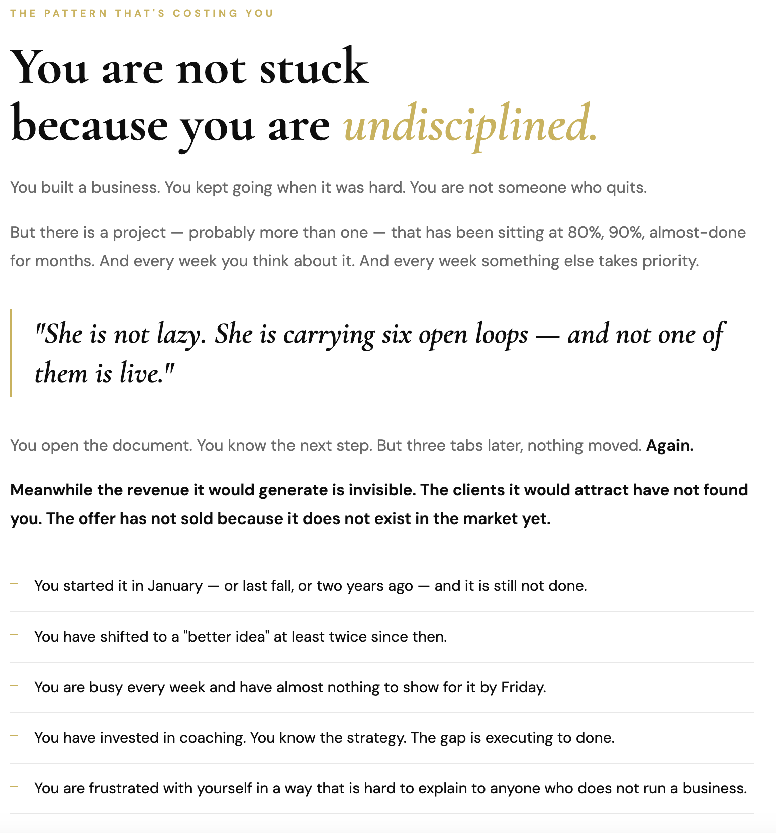 I'm a former college athlete and 2X national rodeo qualifier turned entrepreneur running two businesses while raising a family. I help female founders finish the revenue-generating projects that have been sitting half-done for months or implement the habits that they need to become the kind of woman who is ready for the next level income.