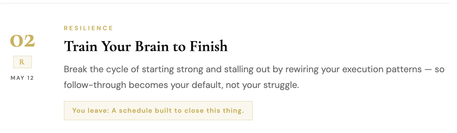You don't need another course (You have plenty of unfinished ones in your inbox). You don't need more color-coded planners. You need to be in a room where finishing projects is the standard.