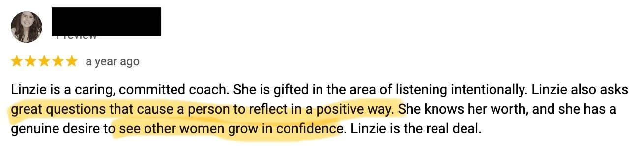 “Linzie is clearly passionate about helping other women level-up in their personal and professional lives. She helped me shift some of the mindsets that kept me stuck (I didn't even realize I had some of them!).